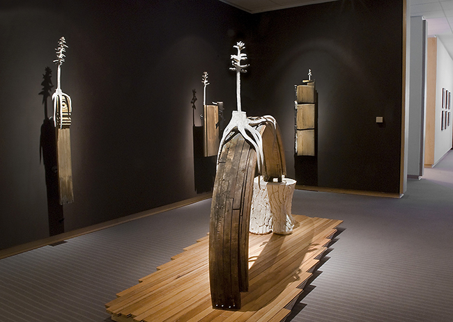 Trees are sacrificed and transformed through lumbering to produce shelter. The tension between our appreciation of trees and the destruction of them in order to sustain our existence is a difficult balance.