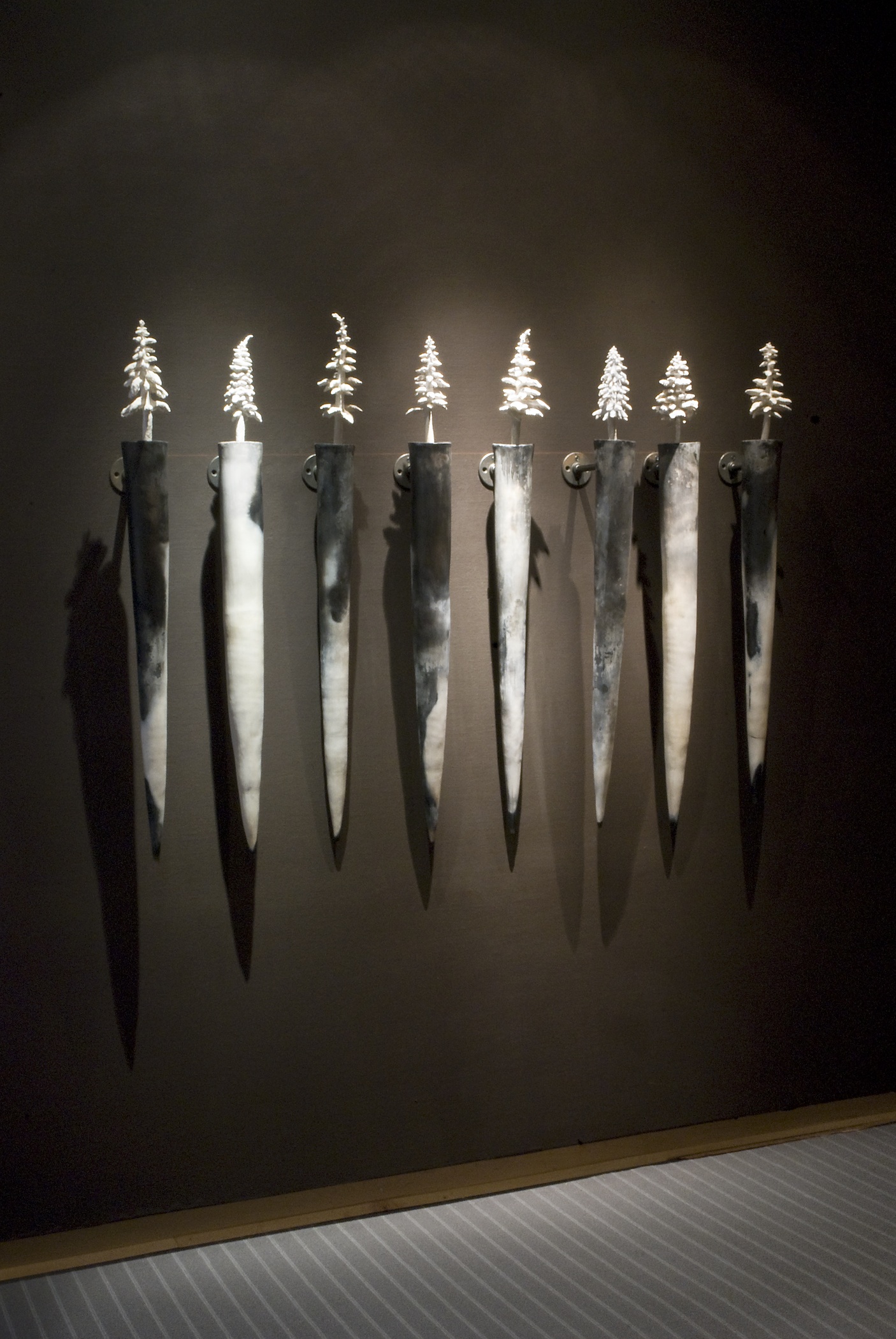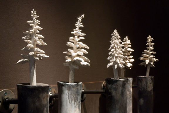 I chose to use porcelain clay for the Ghost Trees because the whiteness of the clay carries many meanings. In our culture, the color of white often symbolizes purity, holiness, virginity. In other parts of the world, however, its absence of color signifies loss, death, nothingness.